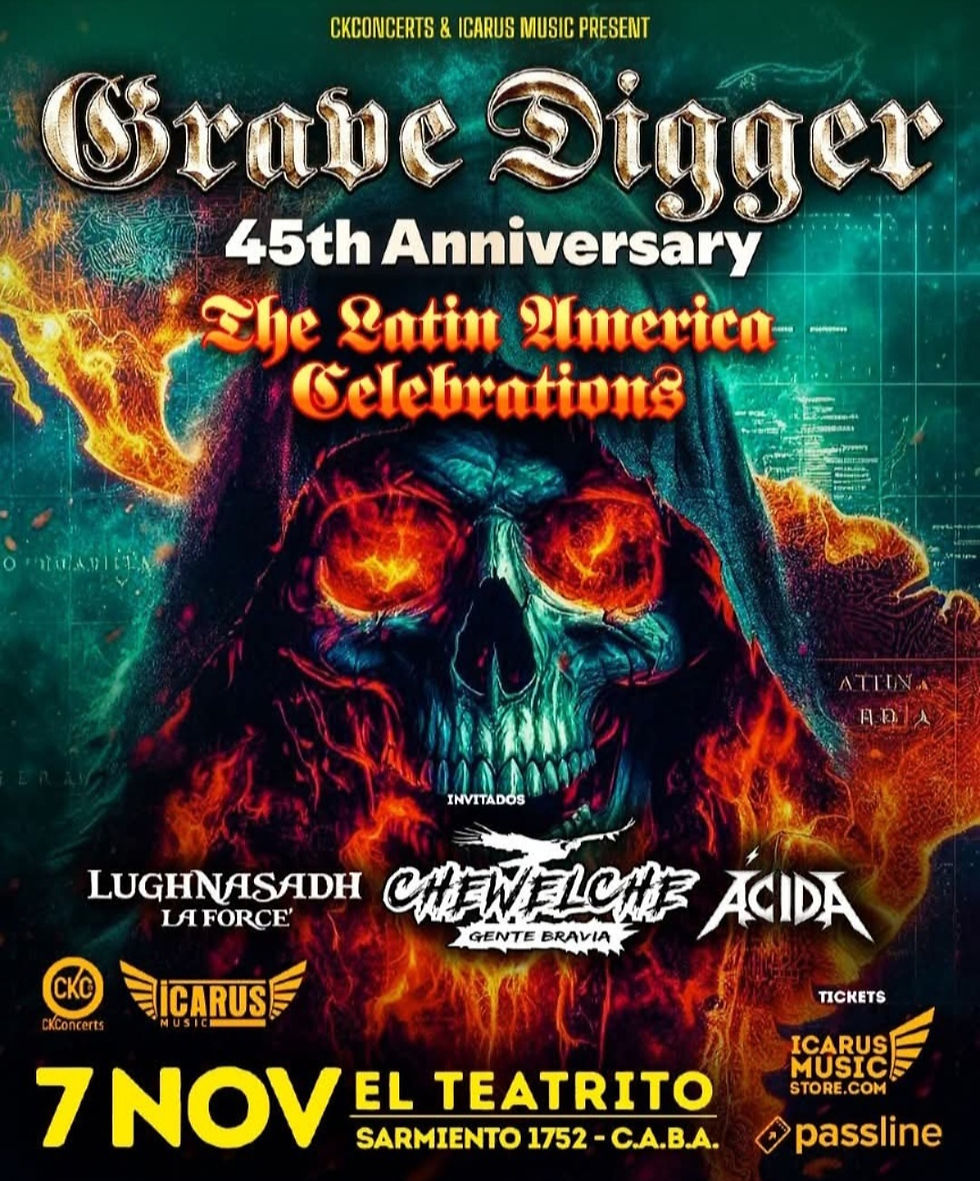 Hablar de Grave Digger es hablar de una leyenda indiscutida, un verdadero baluarte de la vieja escuela del Heavy Metal que ya con cuatro décadas y media continúan llenándonos de buenos riffs reivindicando la esencia del heavy más tradicional sin caer en la mera repetición de un acto nostálgico para recordar “mejores días”, ¡no señor!, Grave Digger continúa su viaje y no parecen tener ganas de parar en un futuro cercano. En el marco de la gira para celebrar sus 45 años de carrera (que los traerá a la Argentina en el mes de noviembre) pudimos conversar en exclusiva con su carismático vocalista Chris Boltendahl y esto fue lo que nos dijo: